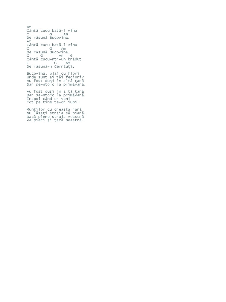 Cantecul Bucovina Plai Cu Flori Versuri