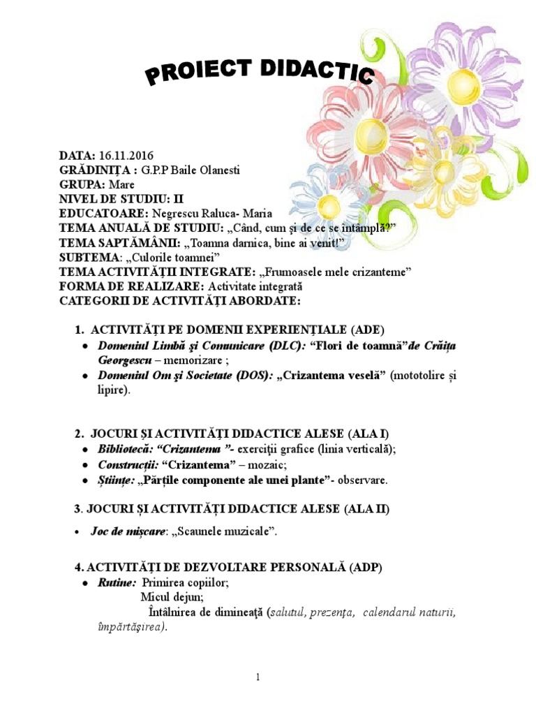 Proiect Mirosul Florilor De Toamna Pedagogie 332409