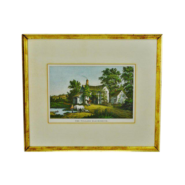 Vintage Framed Currier Ives Print The Village Blacksmith Chairish