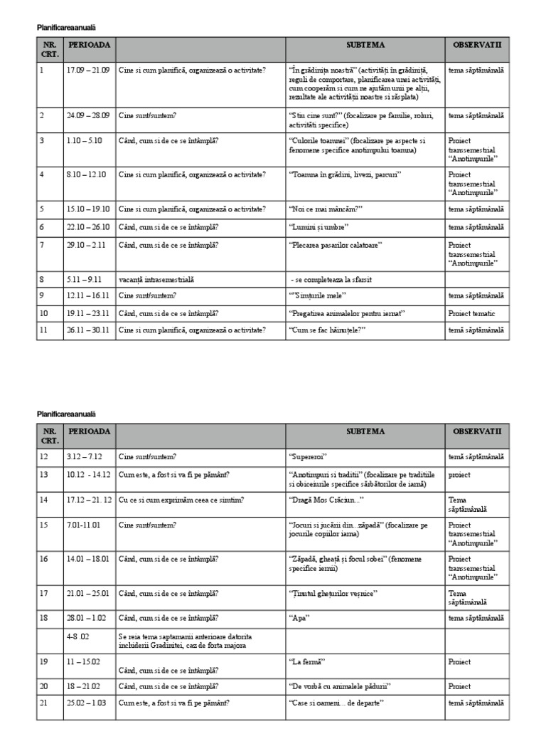 Planificare Anuala Nivel Prescolar