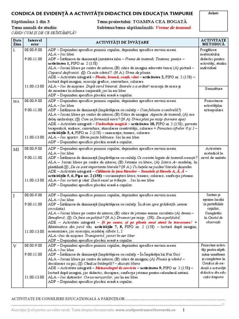 Planificare Saptamanala Conform Noului Curriculum 1 Doc