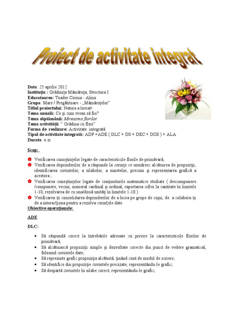 Proiect Didactic Pictura Flori De Primavara Grupa Mare