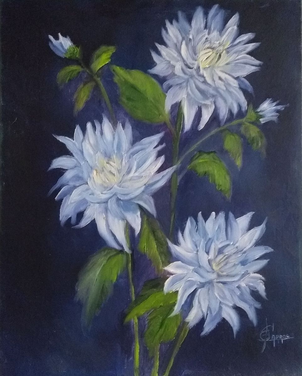 Quadro Decorativo Flores Grandes Azul Moldura Branca